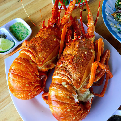 Nói về hải sản, thì nổi tiếng nhất có thể nói là tôm hùm, bởi tôm hùm ở đây không chỉ nhiều, mà còn rất tươi, ngon và rẻ. Bạn hãy tưởng tượng việc tự tay mình bắt những con tôm hùm thật to, sau đó nướng lên và thưởng thức ngay trên bãi biển, thật tuyệt đúng không nào? Ngoài tôm hùm, trên đảo Bình Ba còn có rất nhiều loại hải sản khác như ốc, mực lá, sò huyết,... Bạn có thể nhờ những người dân địa phương ở đây chế biến giùm thành nhiều món khác nhau như: hấp, nướng, làm gỏi,...