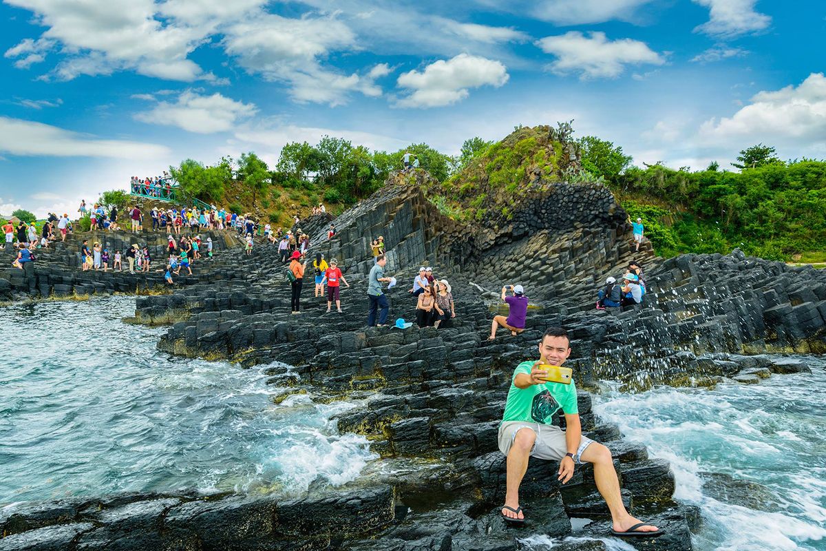 Bạn có thể tha hồ check-in với background “xịn sò” của biển xanh, đá đen và bầu trời trong veo. Tin tui đi, chỉ cần diện một bộ đồ nổi bật, cầm theo chiếc điện thoại đầy pin là có ngay loạt ảnh ngàn like!
