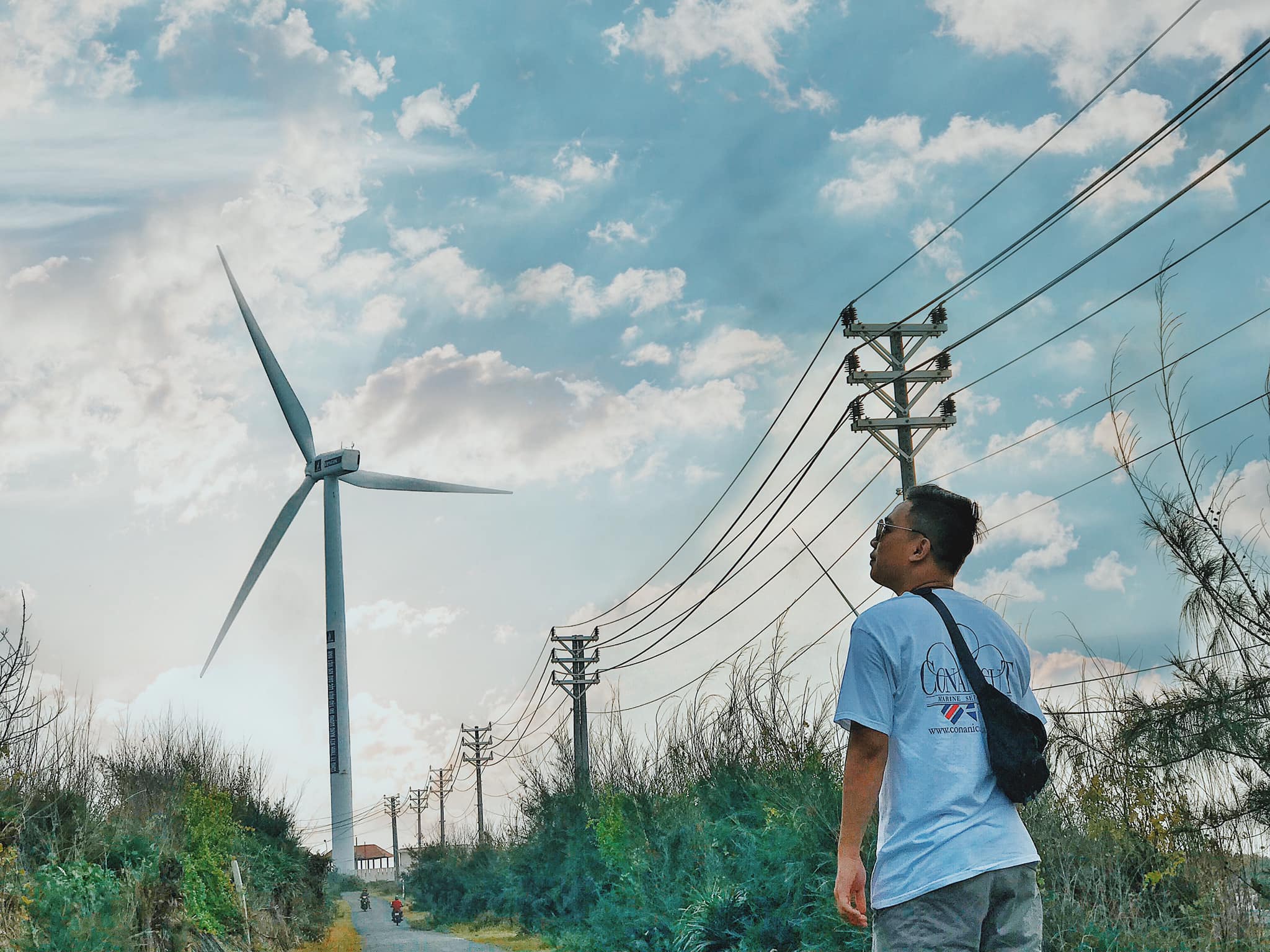 - Trên đường về, đoàn chụp ảnh chiêm ngưỡng Phong Điện, với những “chong chóng” điện gió khổng lồ, nơi sản xuất điện sạch cho người dân trên đảo.