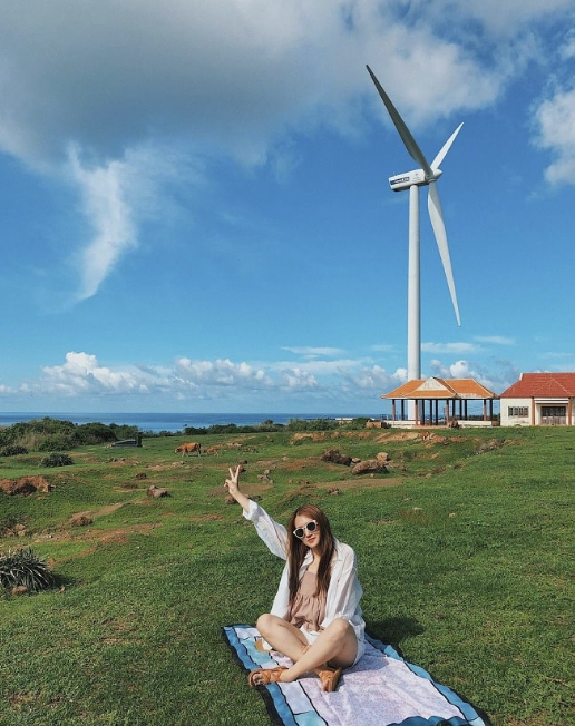 - Trên đường về, đoàn chụp ảnh chiêm ngưỡng Phong Điện, với những “chong chóng” điện gió khổng lồ, nơi sản xuất điện sạch cho người dân trên đảo.