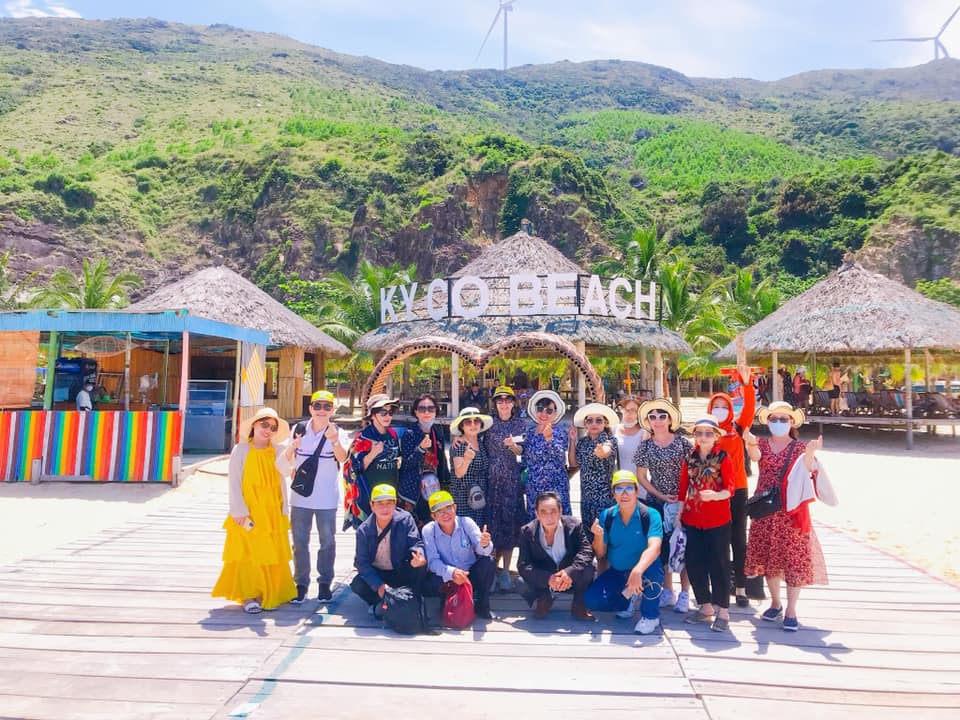 - Đến nơi, Quý khách hòa mình vào thiên nhiên, một bên là biển nước màu xanh lam trong vắt, một bên là núi đá cao sừng sững. Khám phá bãi cát dài mịn, khung cảnh hoang sơ đầy quyến rũ, đặc biệt được chấm phá bằng những công trình đặc sắc như: Cầu Yến, Cầu Trái Tim, Kỳ Co Resort, Thác nước… và những hang đá, suối nước đẹp đến bất ngờ. Quý khách có thể mua thêm dịch vụ: Đi bộ dưới đáy biển, Motor nước, Jetsky, chụp ảnh với sup và bay flycame,... (chi phí tự túc)