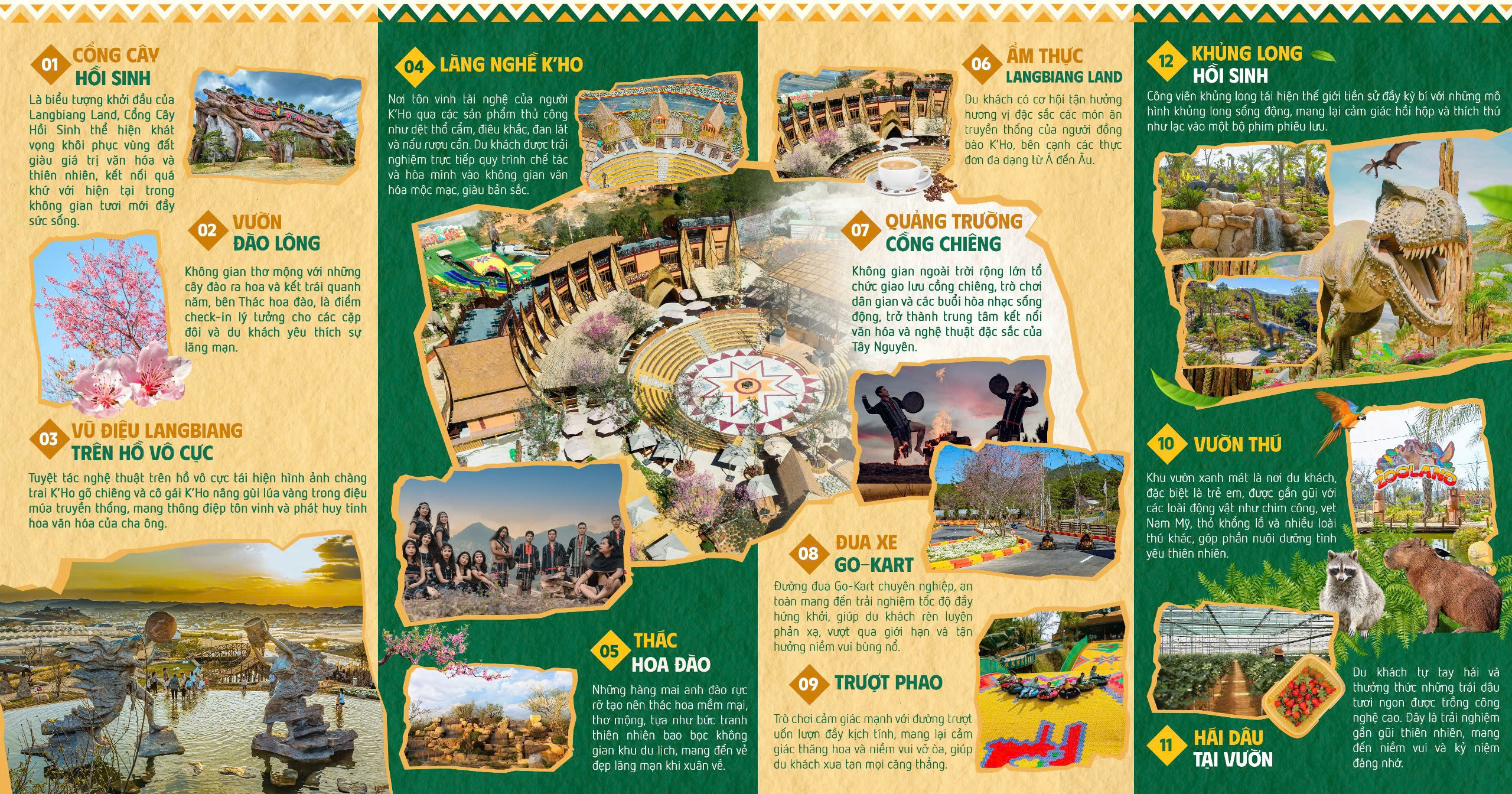 - Langfarm Buffet : Thưởng thức đặc sản không giới hạn Menu đa dạng bao gồm: các loại đồ khô đặc sản, các loại trà thảo mộc, cà phê, nước cốt trái cây, kem gelato, bánh mì sandwich ăn với mứt trái cây, các loại nông sản hấp như khoai, bắp, bánh bao,….).