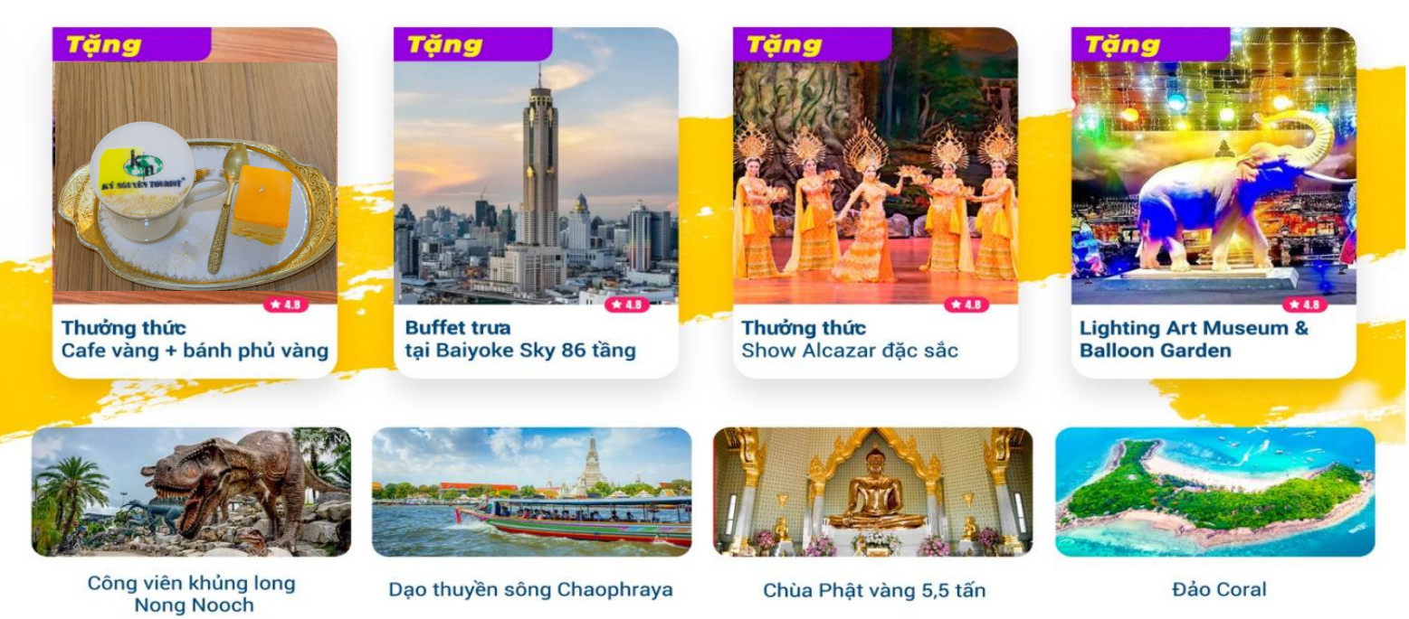 - Bữa ăn theo chương trình gồm: Buffet 86 tầng; Món ăn Thái vv…