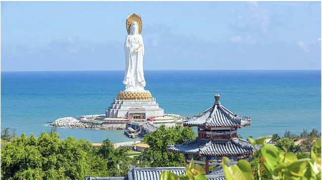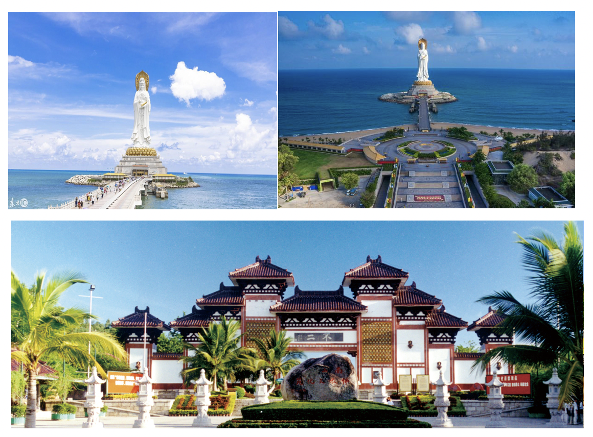 - “Trung tâm Văn Hóa Phật Giáo Nam Sơn” (không bao gồm vé xe điện 50 tệ/người): khu vực này có tổng diện tích lên đến 50km2 với các công trình Phật giáo đồ sộ, nổi bật nhất là chùa Nam Sơn - một trung tâm Phật giáo quan trọng trên đảo. Đến đây quý khách có cơ hội chiêm bái tượng Phật Bà Quan Âm Thượng Hải Nam Sơn đứng trên tòa sen cao 108m trên biển với ba mặt nhìn ra ba hướng tượng trưng cho Từ bi, Bình an và Trí tuệ. Cũng theo điển tích Trung Hoa nếu đến lễ Phật ở Nam Sơn sẽ mang được phúc đức, may mắn về nhà. Tại đây còn một số thắng cảnh: Pháp Môn Bất Nhị, Tam Thập Tam Quan Âm đường, Miếu Nam Sơn, Trường Thọ Cốc, Vịnh Tiểu Nguyệt,....