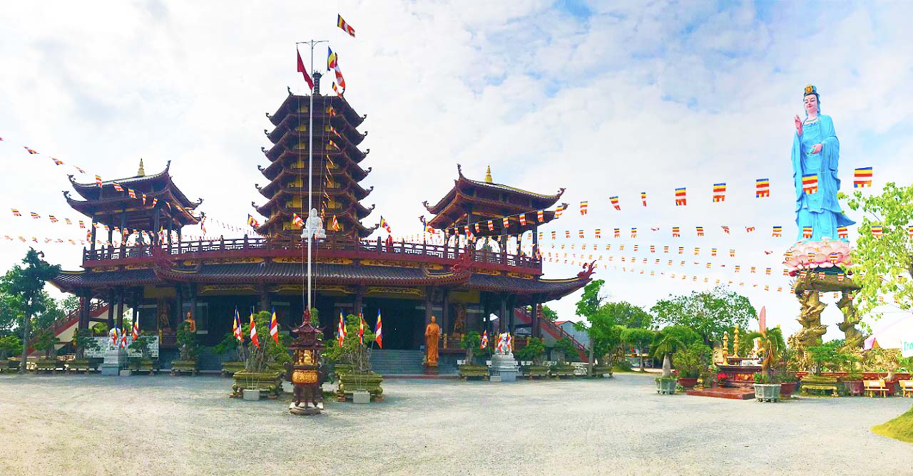 - Chùa Quan Âm Linh Ứng (Chùa Phật Học 2). Cảm nhận đầu tiên của quý Phật tử khi đặt chân đến ngôi chùa này chắc hẳn là sự yên tĩnh, dịu mát bởi không gian chùa rất rộng, bao gồm cả hồ nước lớn với hàng ngàn chú cá bơi lội tung tăng. Trên mặt hồ là chiếc thuyền Bát Nhã – một điểm nhấn tiêu biểu của chùa Quan Âm Linh Ứng. Trong chùa đặt rất nhiều tượng Phật Thích Ca, Phật Như Lai, Phật Di Lặc,… được thiết kế sắc sảo với họa tiết, hoa văn độc đáo tái hiện lại cuộc đời của đức Phật. Khoảng không gian phía sau chánh điện là rất nhiều những tiểu cảnh được sắp xếp đẹp mắt. Mỗi tiểu cảnh là một câu chuyện về sự hi sinh và tình thương của đức Phật để cứu khổ chúng sinh.