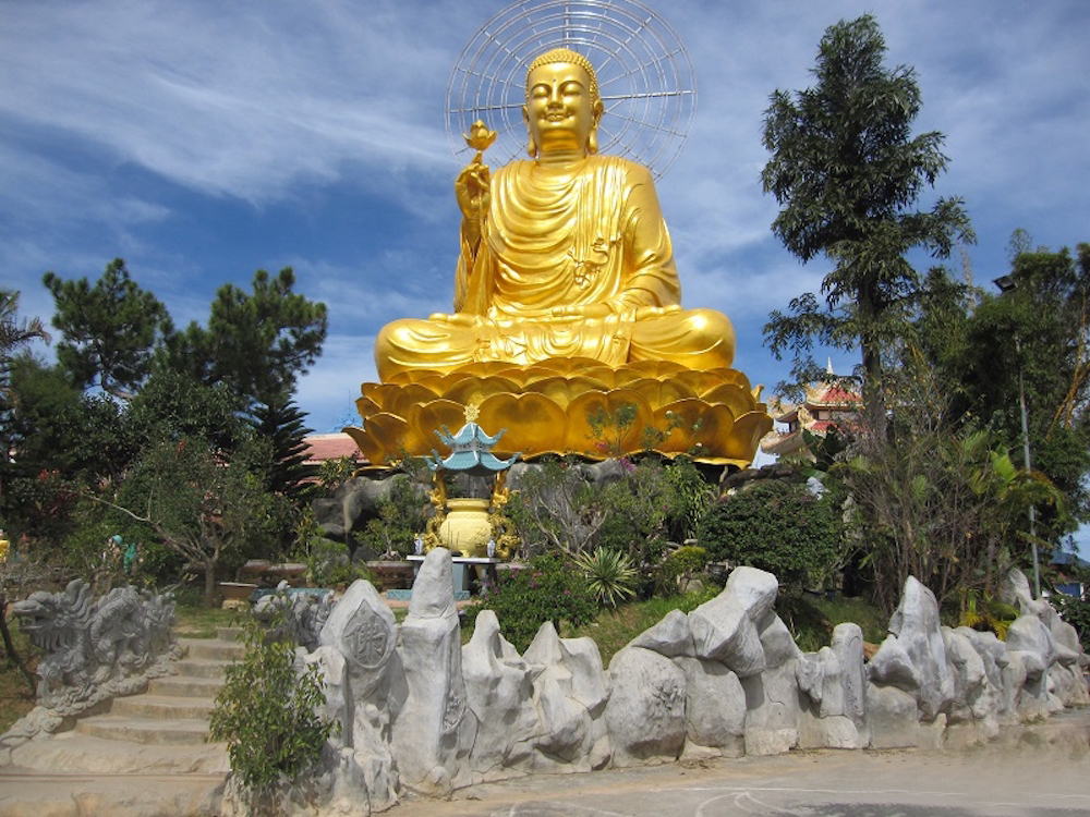 5/ Thiền Viện Vạn Hạnh (Thích Ca Phật Đài). Điểm đặc biệt của Thiền viện là bức tượng Phật Thích Ca cao 24m, rộng 20m tay phải cầm cánh hoa sen, được đánh giá là một trong những tượng phật lớn nhất Việt Nam.